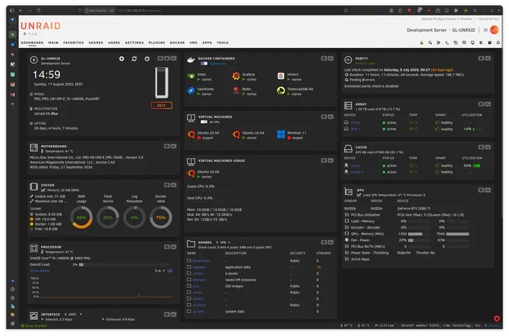 Unraid is a proprietary Linux-based operating system designed for home servers and small businesses. It’s known for its unique storage management system, which provides flexibility and data protection. Developers often use Unraid to run a variety of services, including web servers, databases, and CI/CD tools, all on a single machine.